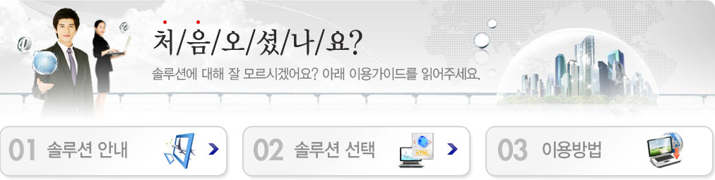 원하시는 사이트 유형에 따라 쇼핑몰, 포탈, 홈빌더, 커뮤니티, 정보제공(컨텐츠몰), 교육, 구인구직, ERP솔루션 등 다양한 솔루션이 분류별로 나누어 있습니다.